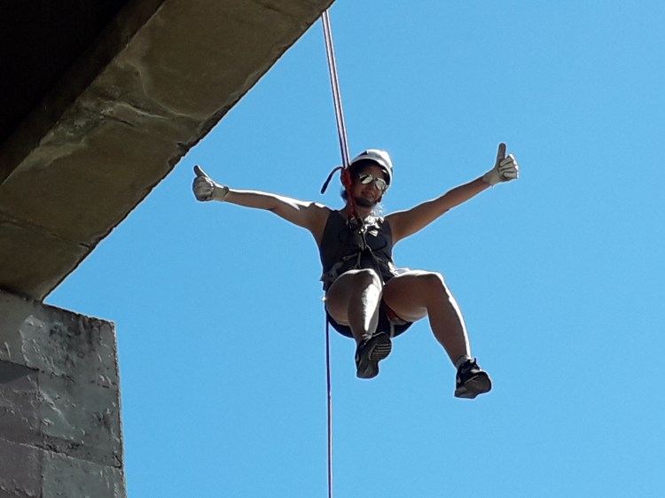 Descenso en pared y al vacío guiado por un Instructor Guía y un Instructor colaborador desde el puente Líber Seregni cabecera sur (cerca de la rambla de Mercedes)