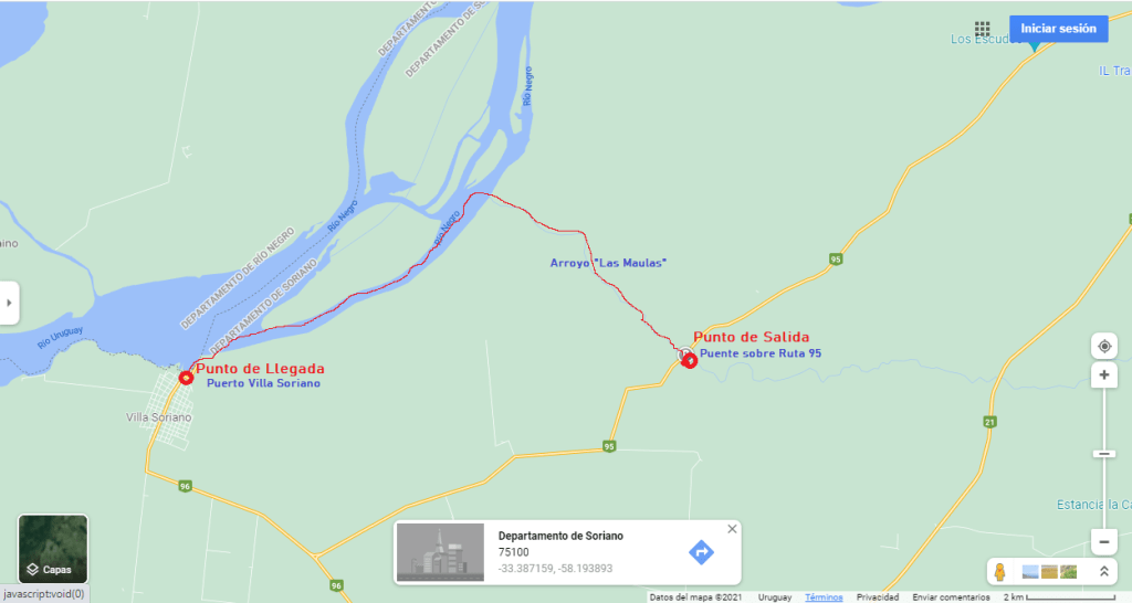 Punto de salida: Salimos desde el puente sobre “el arroyo Las Maulas” en ruta 95 a 17 km de Villa Soriano. (pide ubicación a instructor guía).