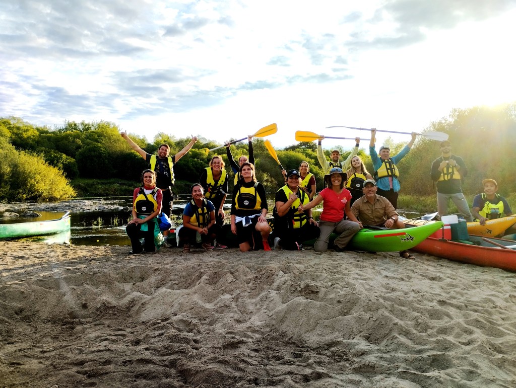 Al llegar a la playa, compartiremos una rica merienda, para recuperar energías reunidos y dispuestos a contemplar el atardecer, espejo del cielo dibujado en las aguas del río negro.